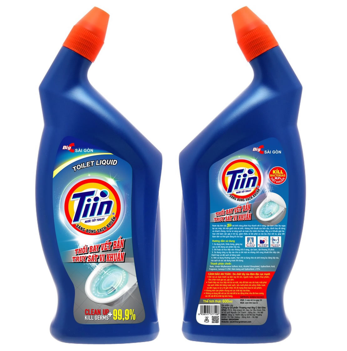 NƯỚC TẨY BỒN CẦU TIIN DIỆT KHUẨN - DIỆT 99,9% VI KHUẨN GIÚP PHÒNG NGỪA DỊCH BỆNH Để phòng ngừa trong mùa dịch bệnh, ngoài các biện pháp vệ sinh thông thường thì việc lau chùi nhà vệ sinh, các bề mặt thường xuyên tiếp xúc với sản phẩm tẩy rửa là cực kỳ quan trọng. Nước Tẩy Bồn Cầu TIIN Diệt Khuẩn (900ml) với công thức diệt khuẩn chứa Sodium Hypochlorite có khả năng diệt 99,9% vi khuẩn gây bệnh bằng cách tấn công hóa học vào protein của tế bào vi khuẩn, phá hủy tế bào và diệt khuẩn hiệu quả, được kiểm nghiệm và chứng nhận định kỳ tại viện Pasteur thành phố Hồ Chí Minh. Ngoài ra, sản phẩm có khả năng diệt cả SARs-CoV-2 trong 10 giây, được phòng thí nghiệm Microbac Hoa Kỳ kiểm nghiệm trong điều kiện thí nghiệm. Hướng dẫn sử dụng: xem trên bao bì. ;Nơi sản xuất: Việt Nam Ngày sản xuất: Xem trên bao bì sản phẩm - Hạn sử dụng: 18 tháng kể từ ngày sản xuất Thành phần: Xem trên bao bì sản phẩm Hướng dẫn bảo quản: Nơi thoáng mát, tránh ánh nắng trực tiếp