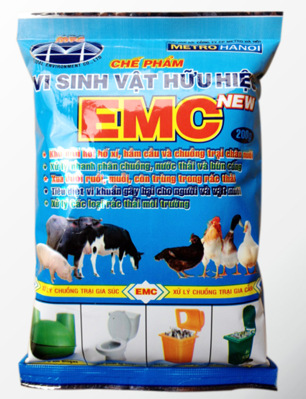 EMC là tập hợp nhiều vi sinh vật hữu hiệu (mật độ >109cfu/g) có khả năng phân hủy mạnh các chất thải hữu cơ trong phân người và phân gia súc, gia cầm, khử mùi hôi, xua đuổi ruồi muỗi, hạn chế sự phát triển của các vi sinh vật gây thối trong rác thải, nước thải, cống rãnh, hầm cầu.