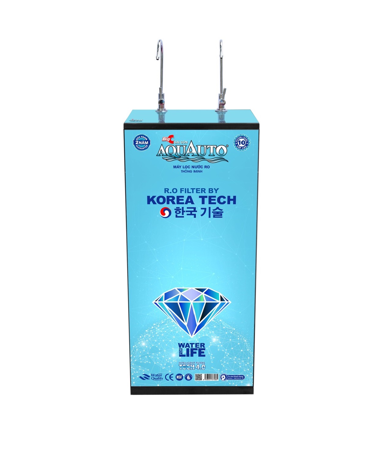 Máy lọc nước RO thông minh, 2 vòi, 10 cấp lọc, bảo hành 2 năm